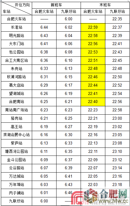 2、軌道交通1號(hào)線合肥火車站每日首班車發(fā)車時(shí)間由6:30提前至6:00,末班車發(fā)車時(shí)間由21:30延后至22:35。