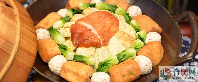 績(jī)溪胡適一品鍋,傾本地上好野味家珍原料集成一鍋,烹調(diào)手法比較講究:鍋底鋪上干筍,第二層鋪上肉塊,第三層是白豆腐或油炸豆腐,第四層是肉圓,第五層蓋上粉絲,綴上菠菜或金針菜,加上調(diào)料和適量的水,然后用文火煨熟即成。此菜菜品豐富、口感多樣,而且鄉(xiāng)土風(fēng)味濃,味厚而鮮,誘人食欲。