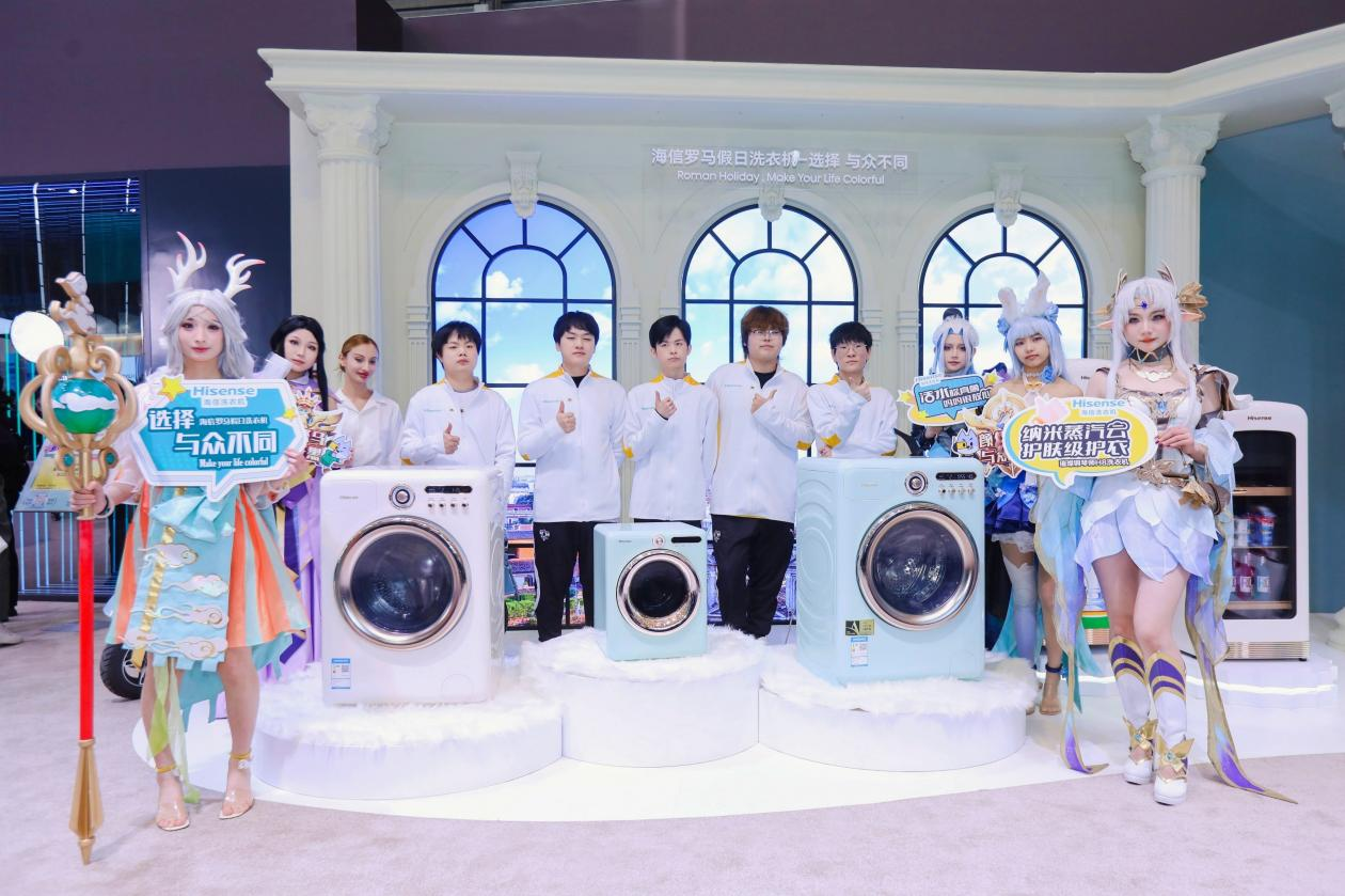 展會(huì)互動(dòng)現(xiàn)場,狼隊(duì)成員身著本命英雄cosplay的服裝,與海信羅馬假日洗衣機(jī)合影留念,并親自體驗(yàn)了璀璨鋼琴師H8洗烘一體機(jī)的卓越性能。這一跨界合作,無疑將電競的潮流與家電的美學(xué)完美融合,引發(fā)了現(xiàn)場觀眾的極大興趣和熱烈反響。